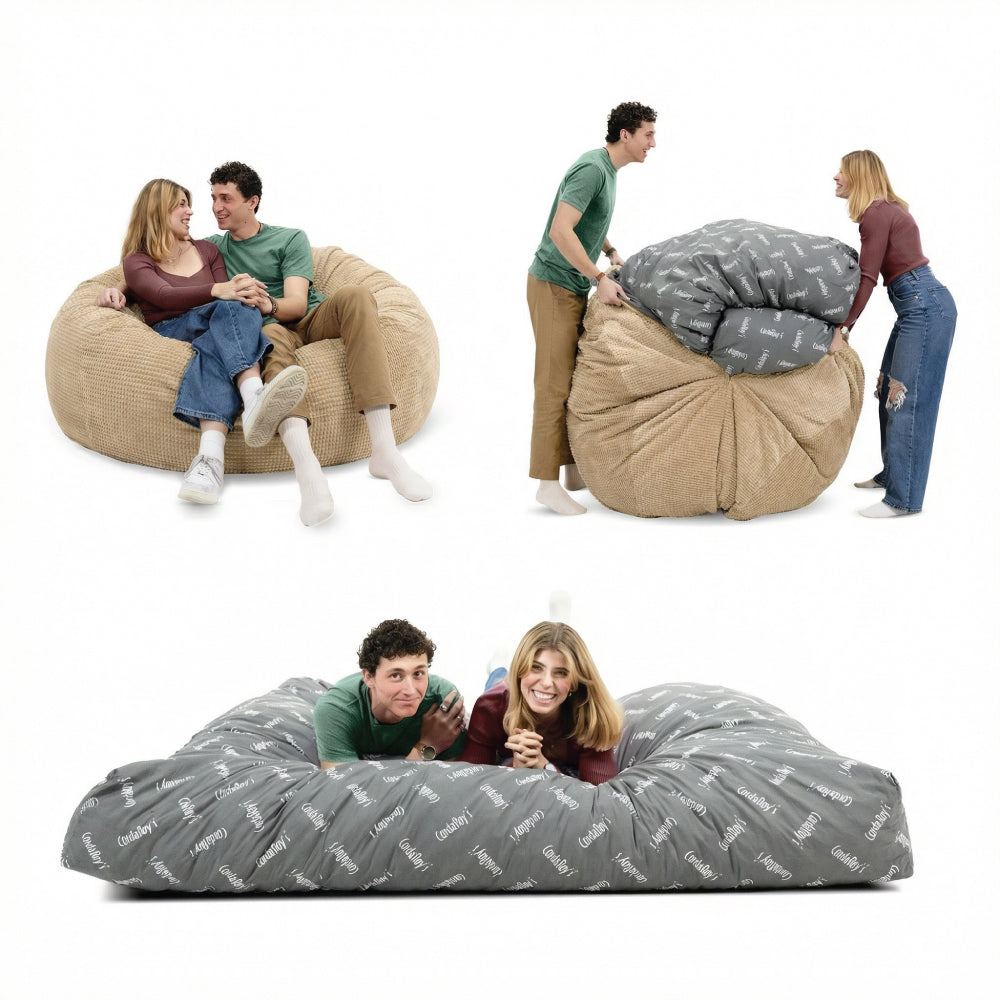 Say goodbye to the noisy, leaky air bed and the bulky pull-out sofa. The Cordaroys 2-in-1 Convertible Chair is the ultimate "space-hacking" solution for modern homes. By day, it’s a high-end, furniture-grade floor chair perfect for gaming, reading, or movie marathons. By night, simply unzip the cover to reveal a supportive, "cloud-like" foam bed that provides your guests with a real night’s sleep. Unlike traditional bean bags, Cordaroys uses premium shredded foam that contours to your body and never goes flat—no beans, no noise, and no mess.